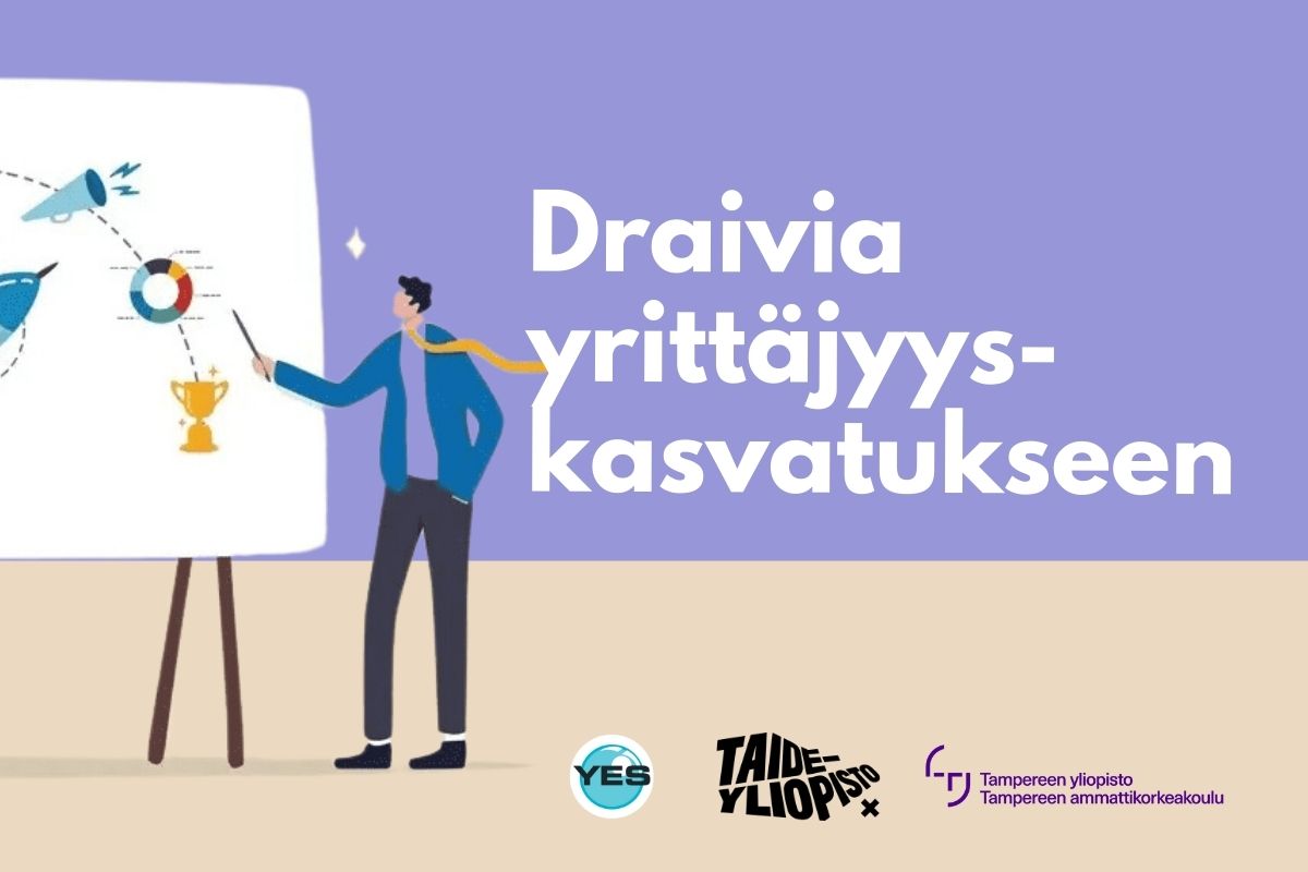 Draivia yrittäjyyskasvatukseen on laaja-alaista yrittäjyyskasvatusta käsittelevä täydennyskoulutus, joka tarjoaa työkalut ja menetelmät, joilla inspiroida ja valmentaa oppilaita. Koulutus järjestetään Taideyliopiston Avoin kampus, Tampereen yliopiston ja YES ry:n yhteistyönä.