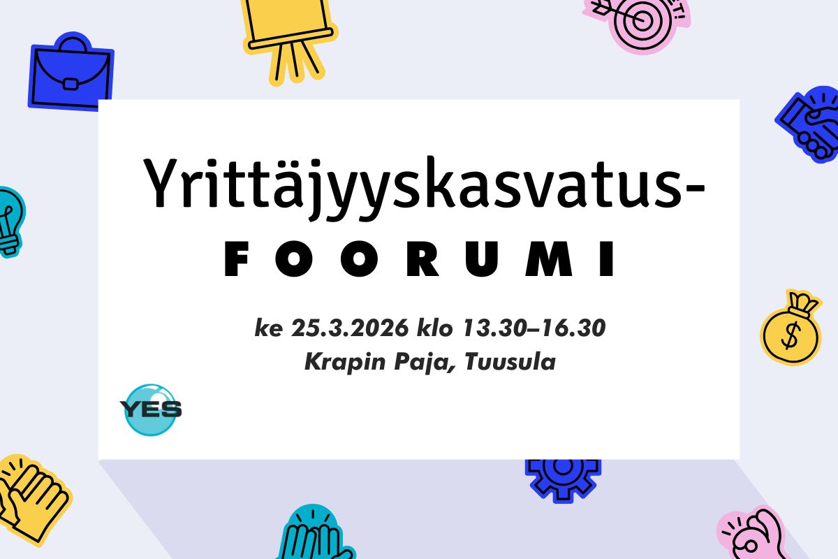 Yrittäjyyskasvatusfoorumissalanseerataan vuoden alussa toimintansa käynnistänyt YES Uusimaa ja tutustutaan yrittäjyyskasvatuksen elinvoimamalliin.