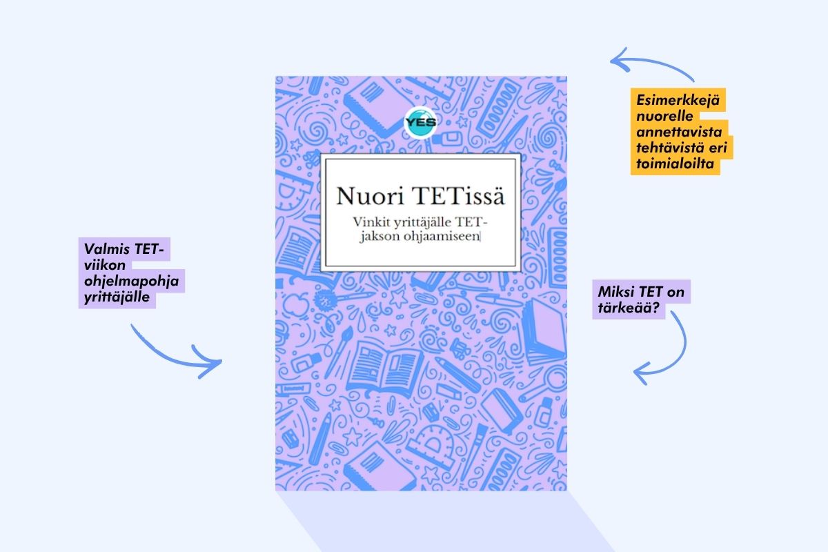 Nuori TETissä: vinkit yrittäjälle TET-jakson ohjaamiseen käy tiivissä paketissa läpi, miten yrittäjä voi valmistautua nuoren saapumiseen, neuvoo käytännön järjestelyissä ja antaa vinkkeä eri toimialoille nuoren osallistamiseen.